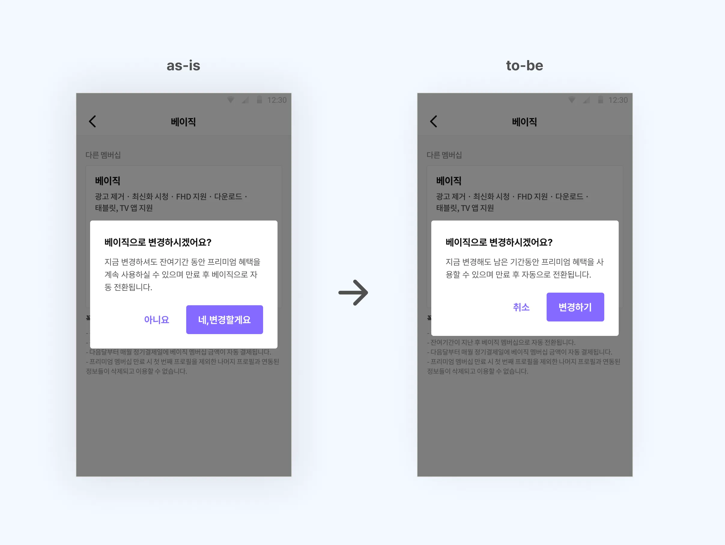 예시2. 프리미엄 멤버십 사용 중 베이직 멤버십으로 변경하는 경우