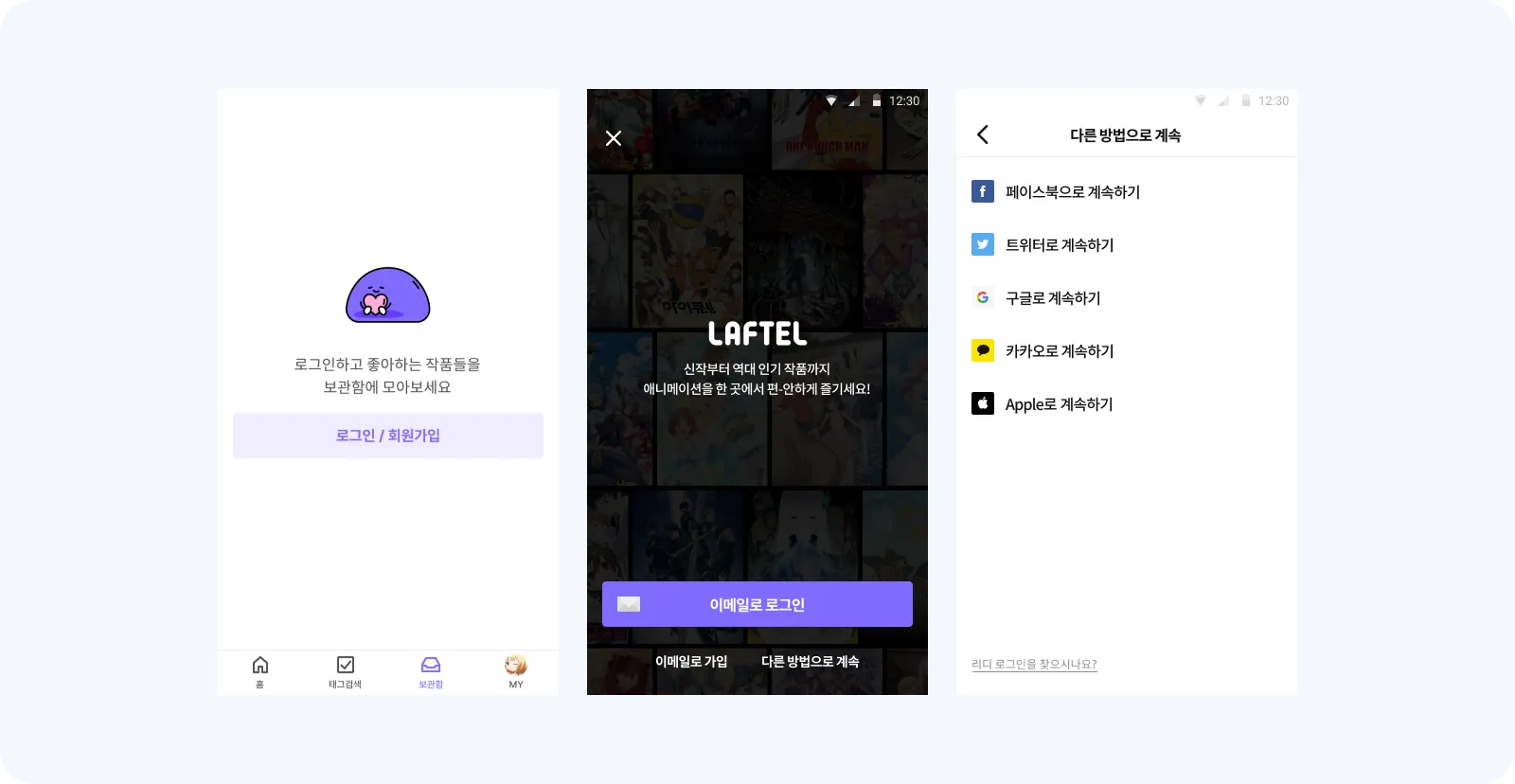 라프텔의 보관함은 로그인한 유저에게만 제공되는 기능으로, 신규 유저는 보관함 기능에 대한 안내를 확인하고 버튼을 눌러 로그인/가입 랜딩 화면으로 이동할 수 있었어요. 사용자 경험측면에선 UI를 복잡하게 만들 수 있는 불필요한 뎁스는 최소화하고, 사용자에게 필요한 정보나 기능에 빠르고 쉽게 접근할 수 있게하는 직관적이고 단순한 인터페이스를 제공하는 것이 중요한데요. 여기서 저는 유저에게 로그인/가입을 더 빠르게 도와줄 수 있도록 바로 랜딩 화면으로 보내는 개선점이 있을 수 있겠다고 생각했어요.