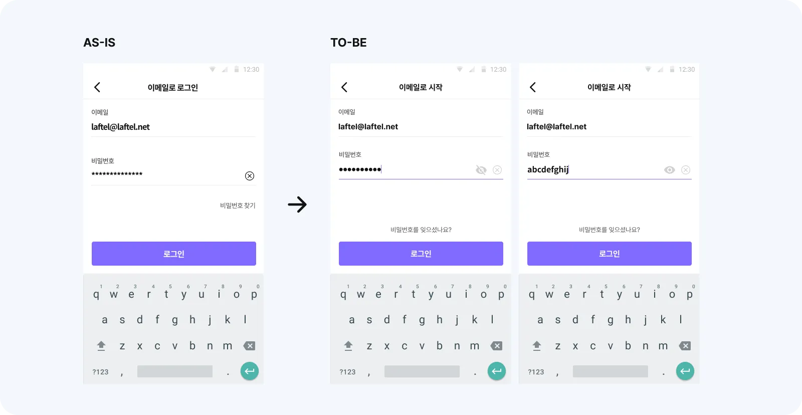 로그인 → 하단 비밀번호 텍스트 필드가 자연스럽게 생성