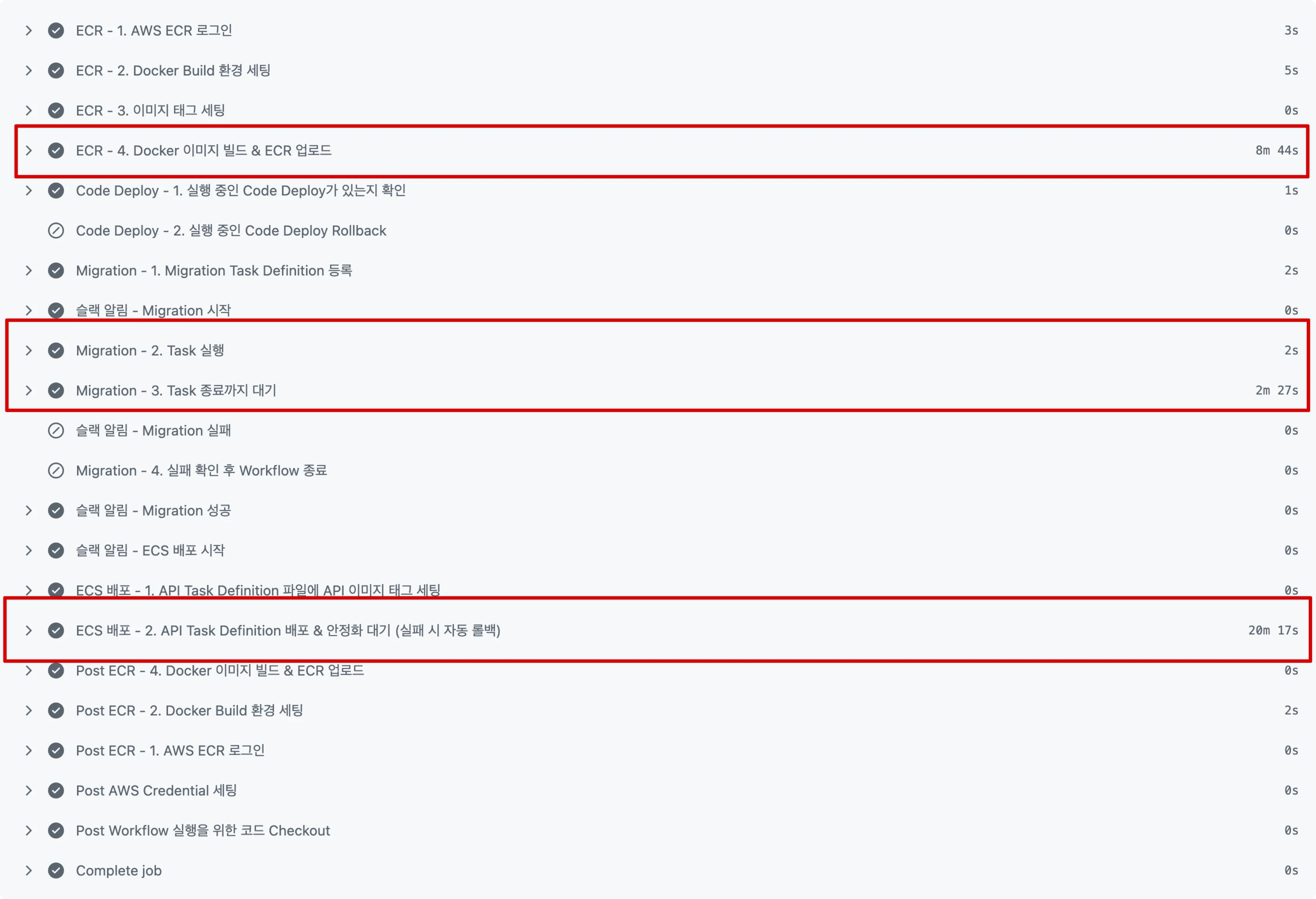 DB 마이그레이션 실행 (단일 실행 태스크) | 약 1분 | 약 1분 | x | x |