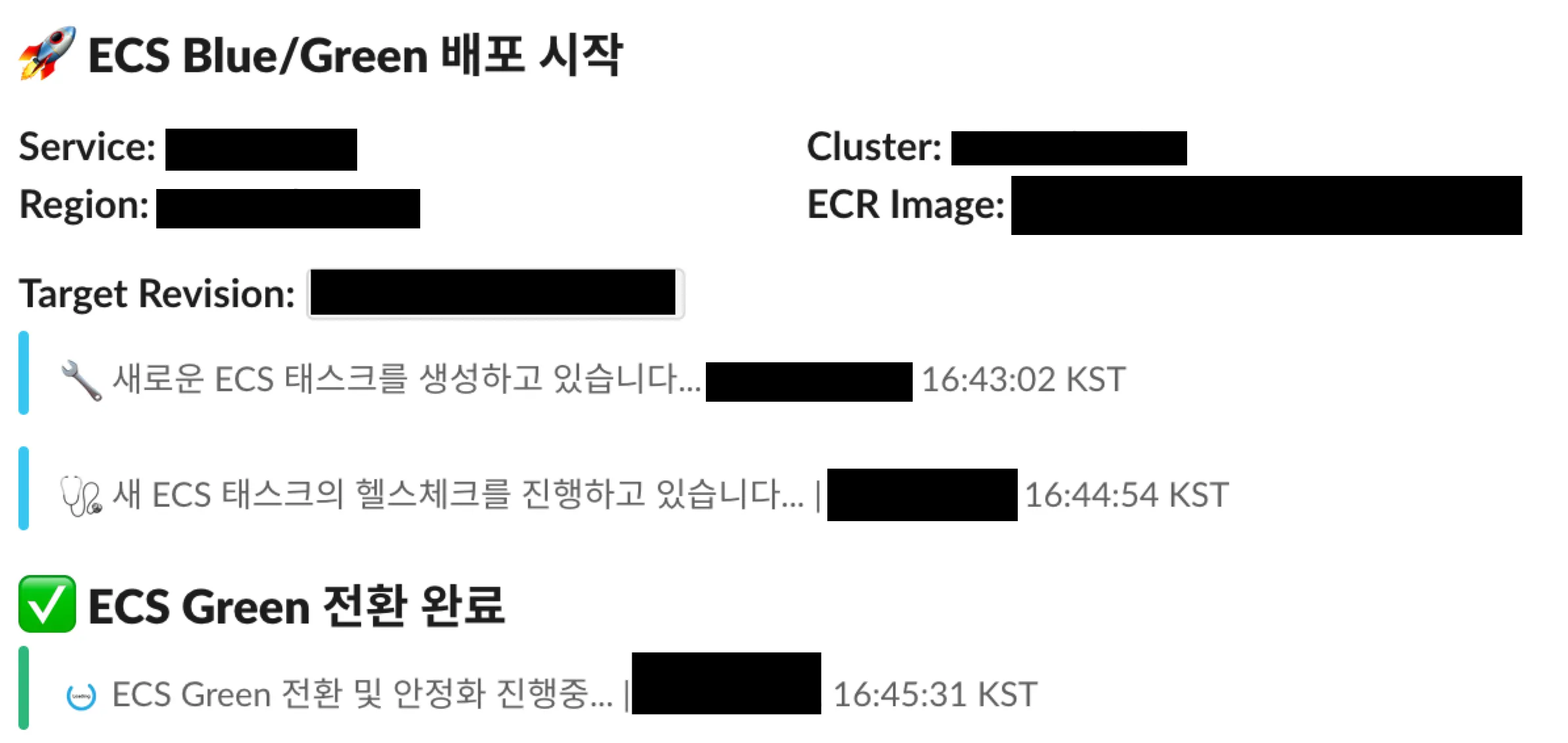 ECS Blue/Green 배포 (서비스 교체) | 약 18분 | 약 2분 30초 | -15분 30초 | -86% |