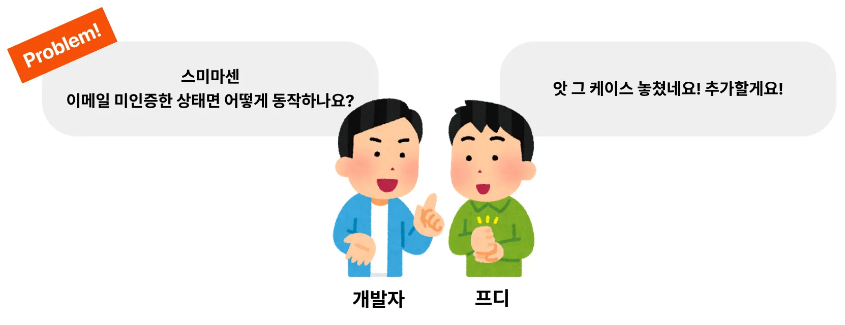 이렇게 특정 케이스를 놓쳐버린거죠! 그럼 프로덕트 디자이너는 호다닥 이메일 미인증 상태 관련 내용을 스토리보드에 추가합니다. 그럼 이제 끝났을까요? 아닙니다.