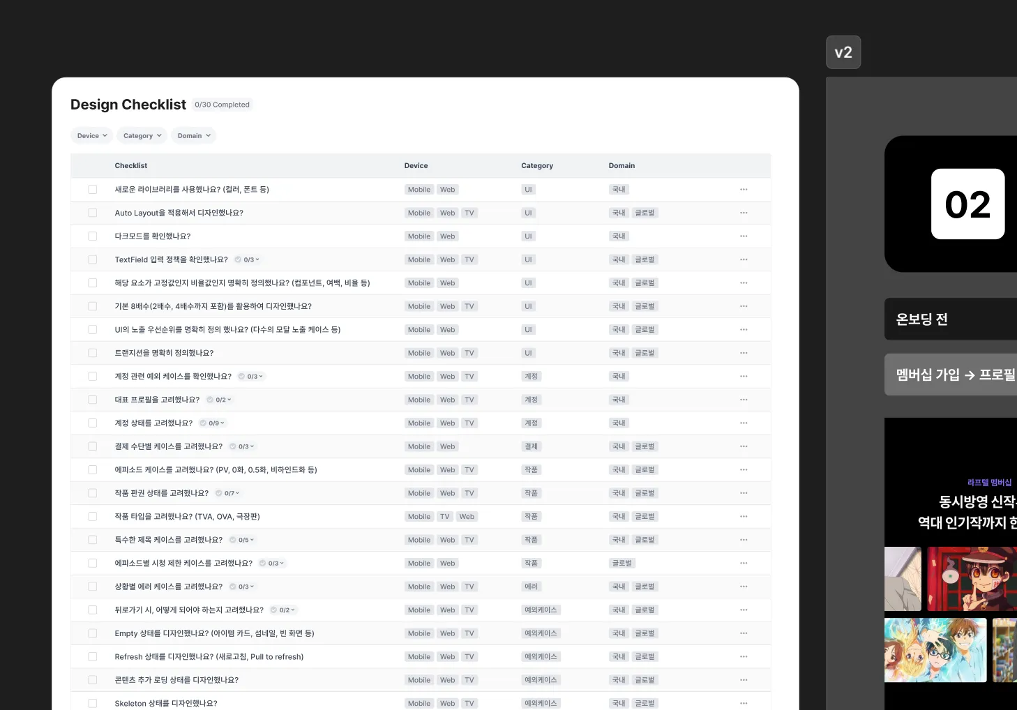 안녕하세요! 애니 전문 OTT 라프텔의 프로덕트 디자이너 매미입니다. 오늘은 디자인을 더 잘 할 수 있도록 돕는 디자인 체크리스트 제작 과정을 공유하려고 합니다.