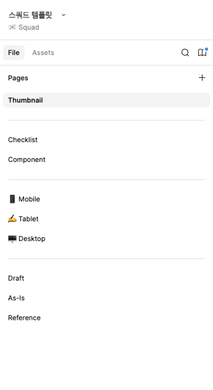 저희는 디자인 작업 시 피그마 내에 미리 생성해둔 템플릿 파일을 복사해서 사용는데요, 이 템플릿에 체크리스트 페이지를 추가해 디자인하면서 바로 활용할 수 있도록 하였습니다.