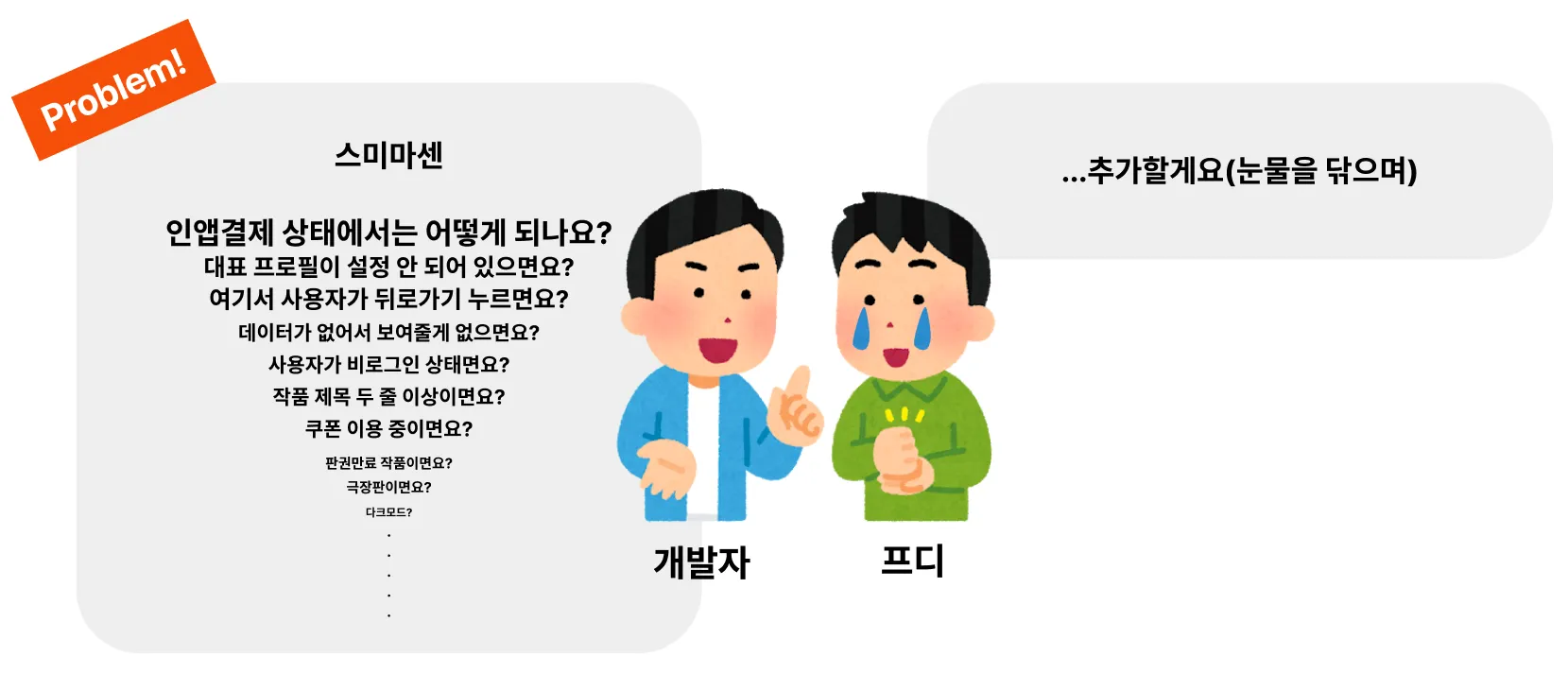 이런 식으로 개발뿐만 아니라 다양한 팀과 검토하면서 놓친 수정사항이 끊임없이 발생하게 됩니다. 그럼 왜 이런 상황이 생겨나게 되었을까요?